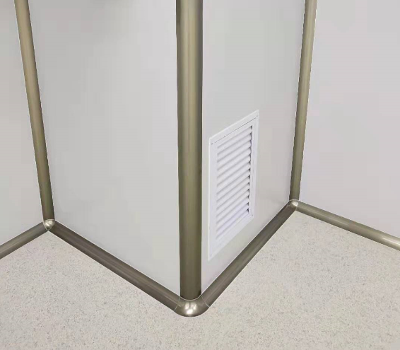 洁净车间的空气循环是通过设置在吊顶内的空调机+末端FFU高效送风单元完成的。其气流组织采用上送下侧回。风系统只设回风管,回风管通过室内回风竖井将室内空气输送至FFU回风口来实现回风。
